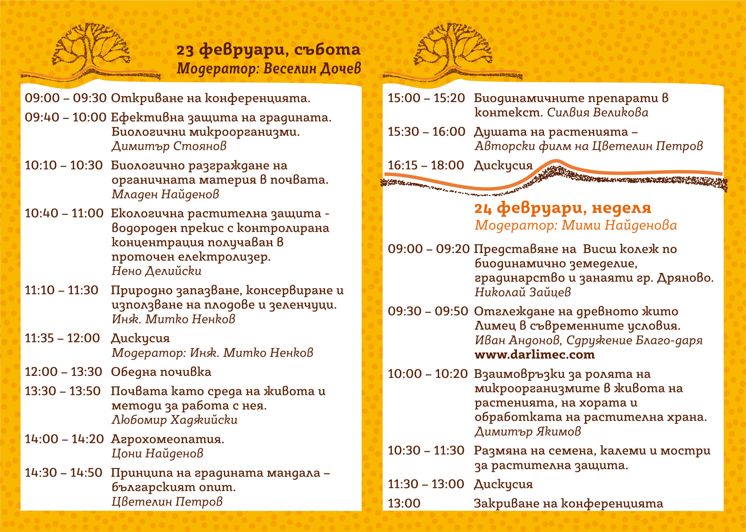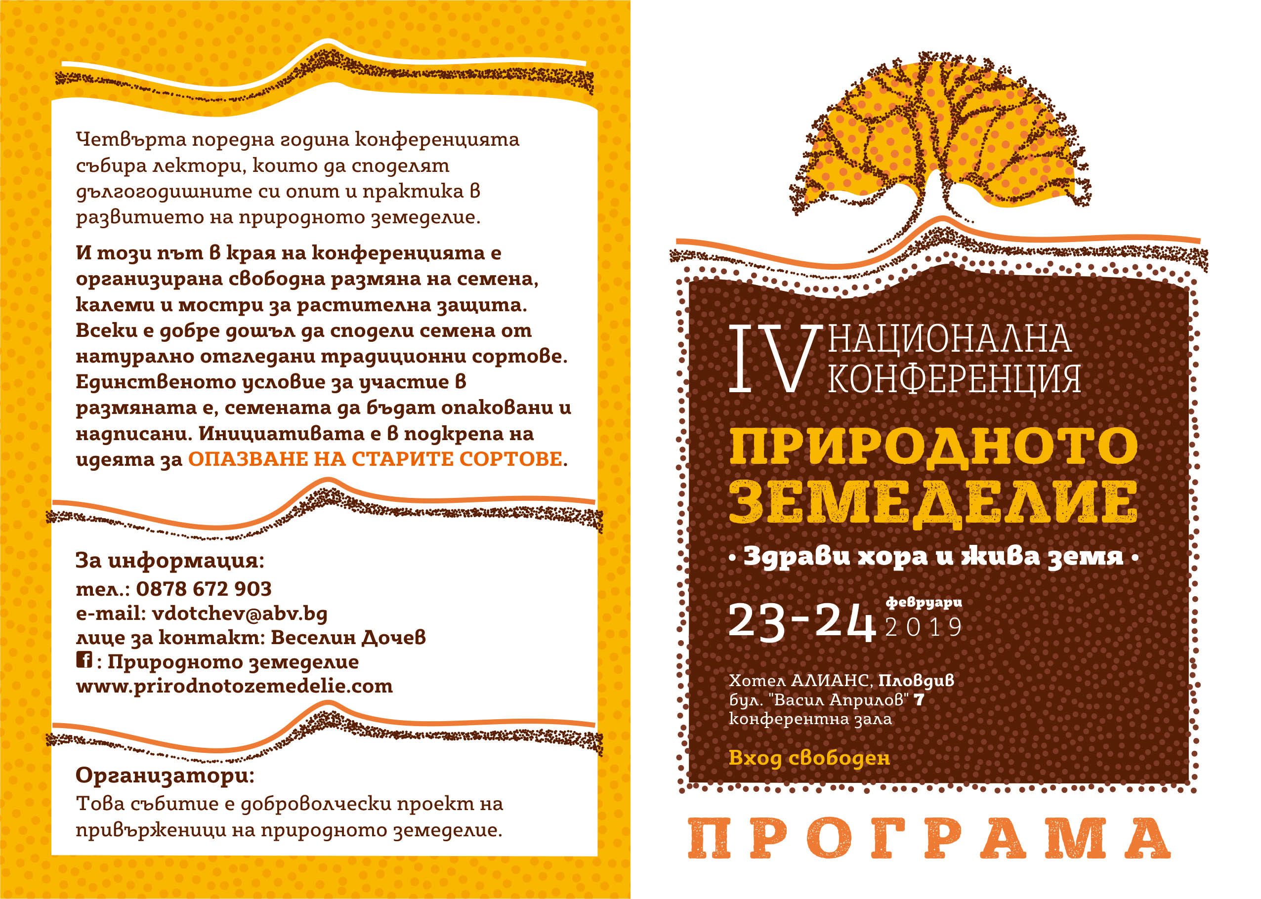 За четвърта поредна година ще отвори врати конференцията „Природното земеделие“ в хотел „Алианц“, Пловдив на 23 и 24 февруари. В града, който понастоящем е културната столица на Европа ще дадем гласност на щадящите земята практики насочени към чиста, с отлични вкусови качества и, изобилна реколта. Сред разглежданите въпросите са: