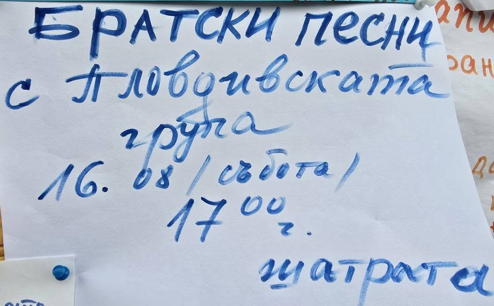 16 ч. - Общо събраниие на участниците в ЛДШ - организационни въпроси - място на провеждане - шатрата. 18.30 ч. - Пеене със Симеон на Мястото на Учителя