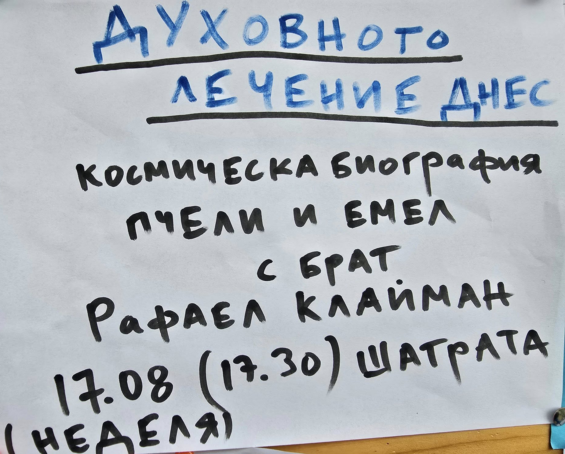 ![]() Духовното лечение днес Космическа биография, пчели и имел с брат Рафаел Клайман Дата: 17.08.2025 г. (неделя) Място: Шатрата - от 17:30 ч.