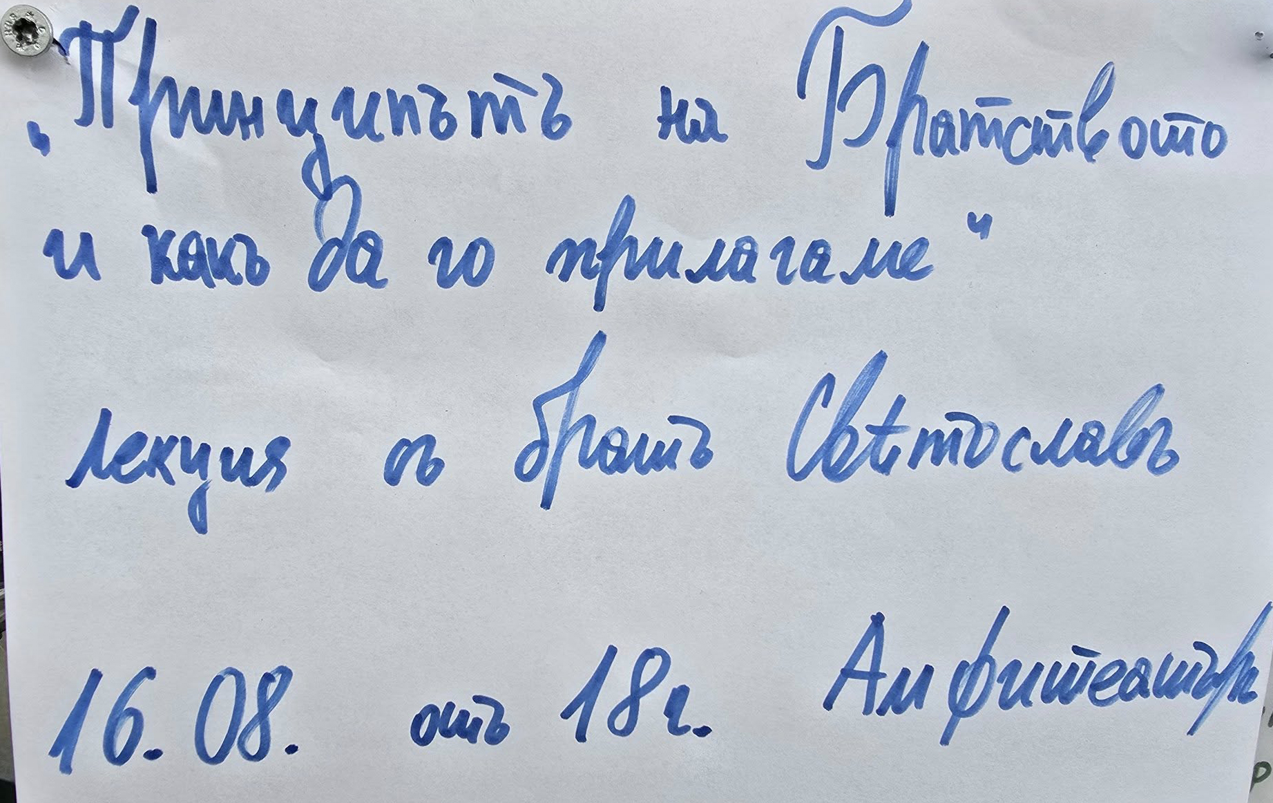![]() Принципът на Братството и как да го прилагаме – ЛДШ Рила 2025 г. Лекция с брат Светослав Дата: 16.08.2025 г. (събота) Място: Амфитеатъра - от 18:00 ч. |