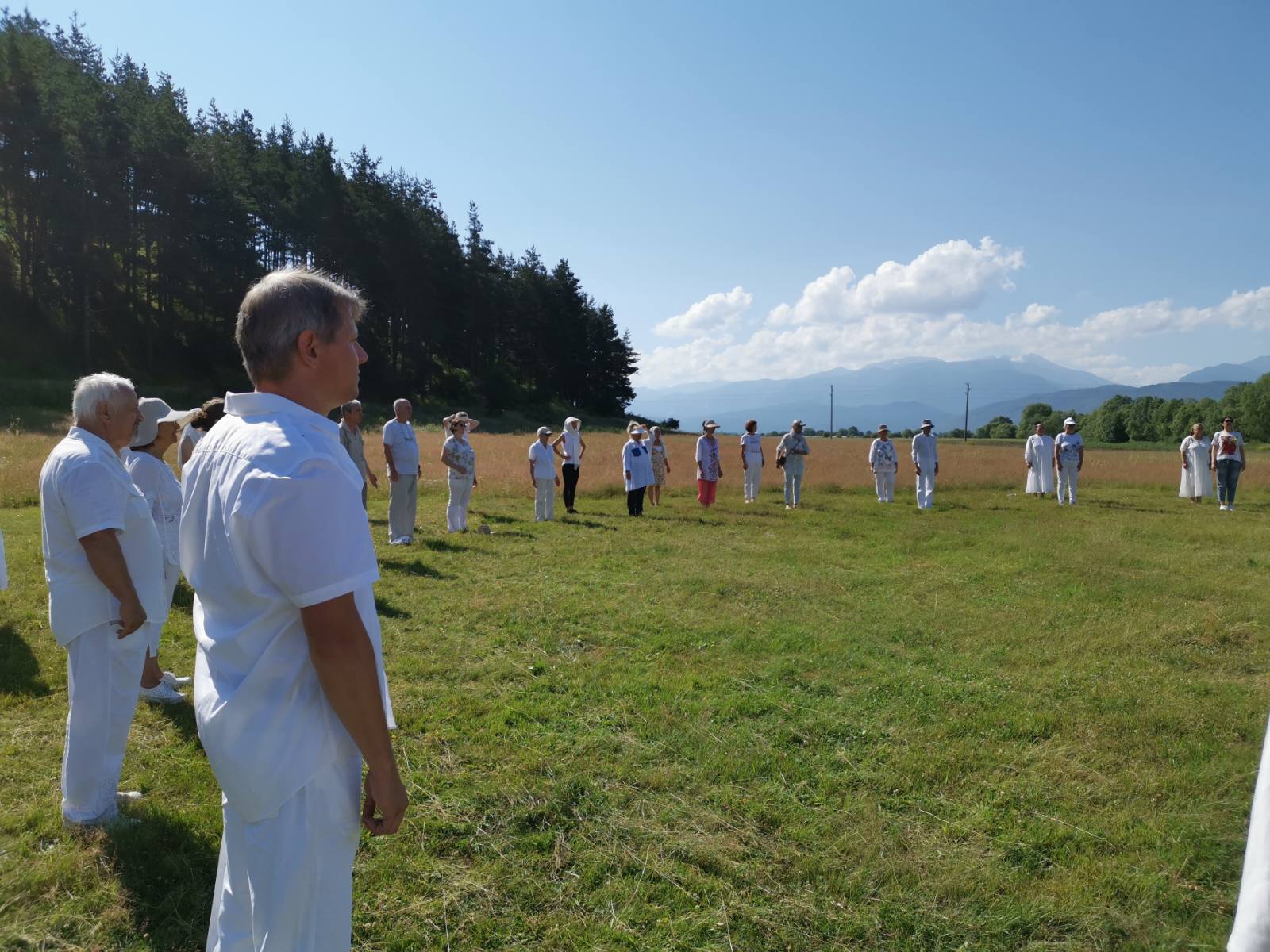 Предвидете си, молим, 08:30 ч. да сте на мястото за паркиране (в приложената схема), имате кратко ходене до поляната, подготвяне и позициониране. Паневритмията започва точно в 9,00 ч. Ще свирят музиканти. Поляната е с приказен изглед към Рила. След това на същата поляна ще има беседа, споделен обяд и музика. Координати към мястото за паркиране и към поляната има в приложените линкове.